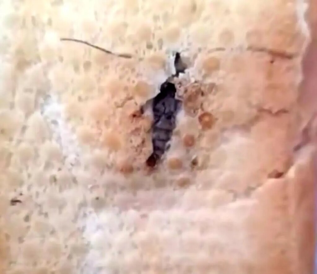 Şırnak’ta bakkaldan ekmek alan bir kişi, meskende karşılaştığı görünüm karşısında neye uğradığını şaşırdı. Ekmeğin alt kısmında bir böcek olduğunu gören vatandaş, o anları cep telefonu ile kaydetti. İsminin açıklanmasını istemeyen şahıs, kontrollerin arttırılmasını istedi. – ŞIRNAK